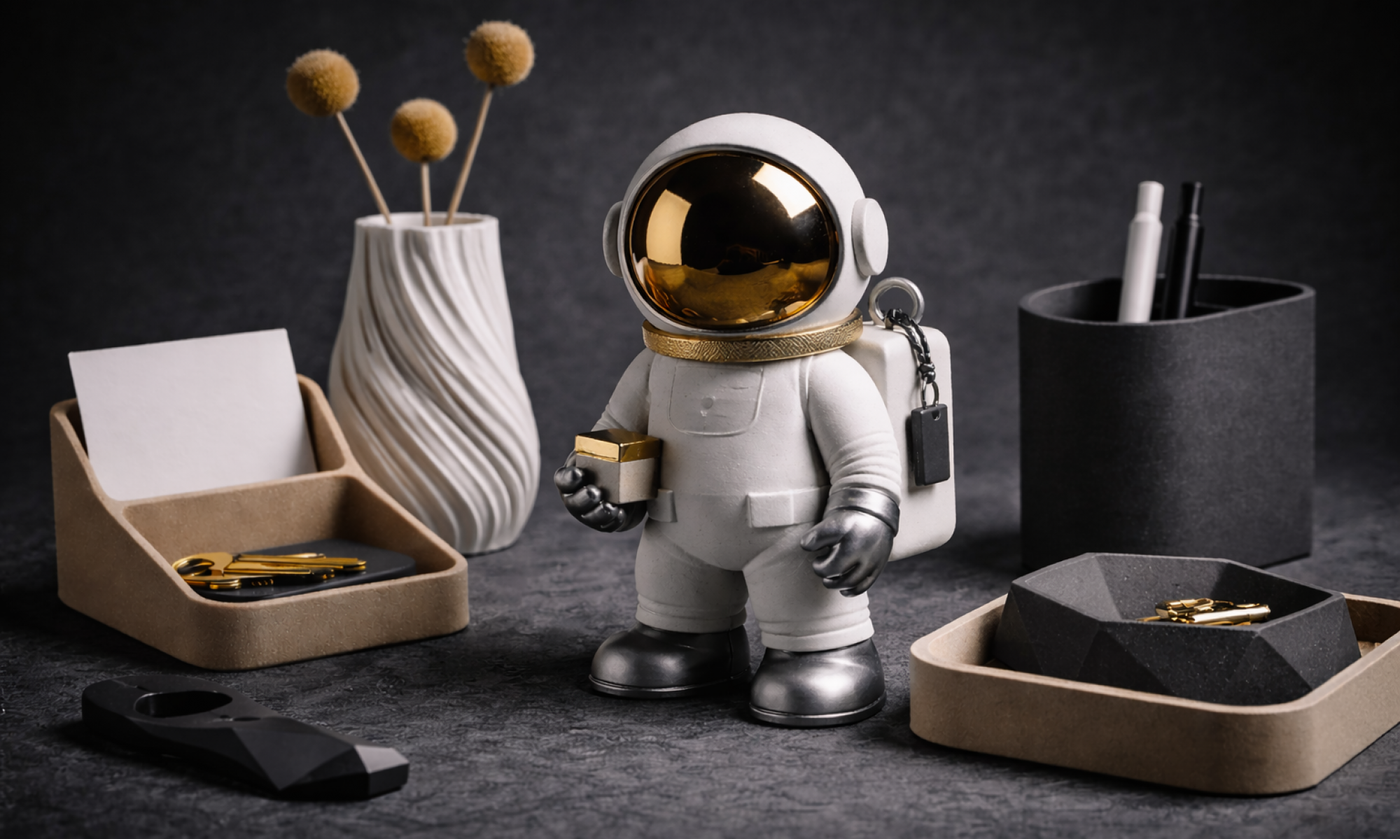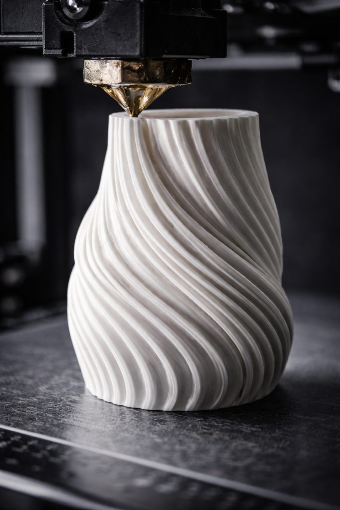 Der Entwurf beginnt digital im RauhLab. Anschließend wird jedes Objekt mit hoher Präzision im 3D-Druck gefertigt. Durch die Produktion auf Bestellung entstehen keine Lagerbestände – jedes Stück wird erst dann produziert, wenn es gebraucht wird.